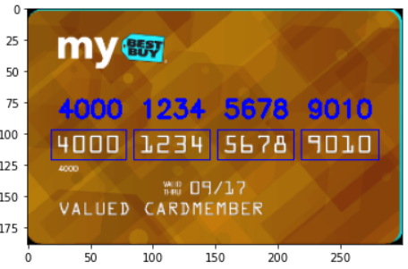 print("Credit Card #: {}".format("".join(output))) plt.imshow(image)